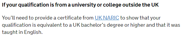 Comparable UK Qualifications 이 Bachelor Degree 이상으로 나와야만 하니까 학사 이상이어야 합니다!