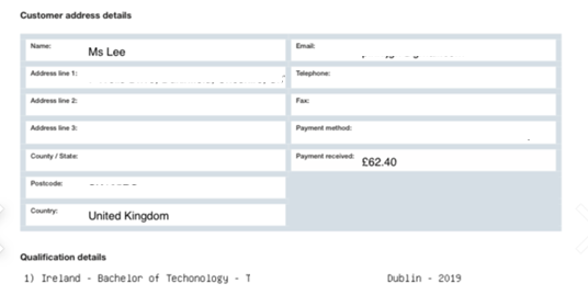 저 같은 경우는 Ireland에서 대학교를 졸업했기 때문에 Ireland를 선택하고