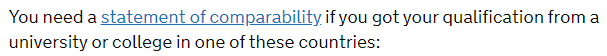 영국이 아닌 다른 국가에서 졸업하였을 경우에는 UK naric을 받아야 해요.
