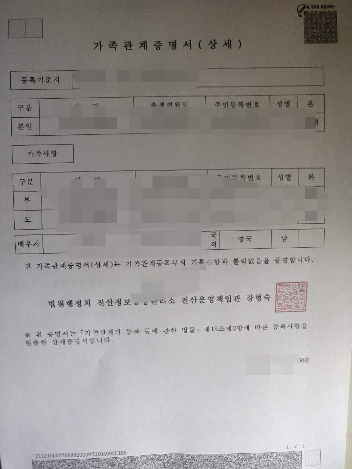 2021/03/04 - [영국/결혼 생활] - [비자] (8) 영국 배우자 비자 준비 과정 : Signature Notary, 영국인 공증사의 한국 혼인신고서 서명 공증