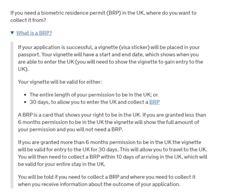 BRP 카드와 관련된 항목도 있습니다. 가까운 우체국을 적으시면, 영국에 입국 시 현재 하는 자가 격리 끝난 후 바로 가지러 가시면 되는데요. 관련 글을 올릴 예정입니다. 배우자 비자 발급 후 영국에 도착하셔서 가장 먼저 하셔야 하는 일이랍니다!