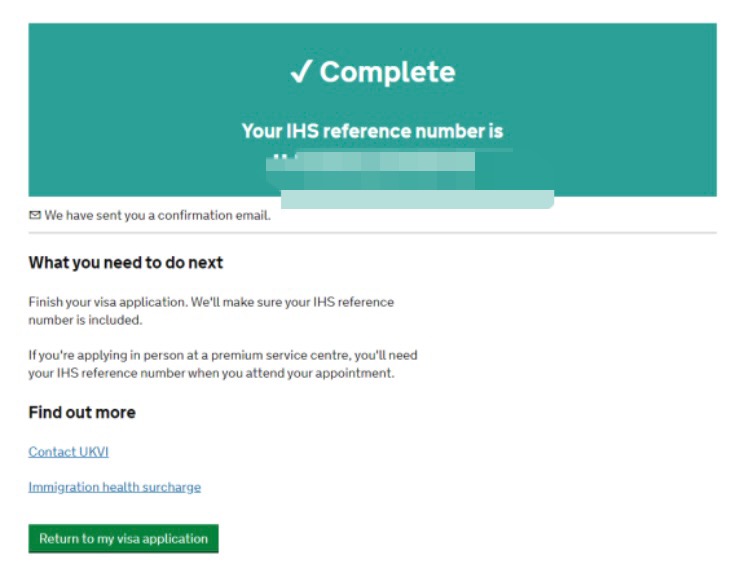 돌아오면 IHS reference number을 보여주는데요, 이 번호는 이메일로도 받습니다. 이 넘버를 다시 visa application에 돌아오면 적어야 되는데, 적는 란에 넣어주면 UK gov에서의 비자 접수가 끝이 납니다.