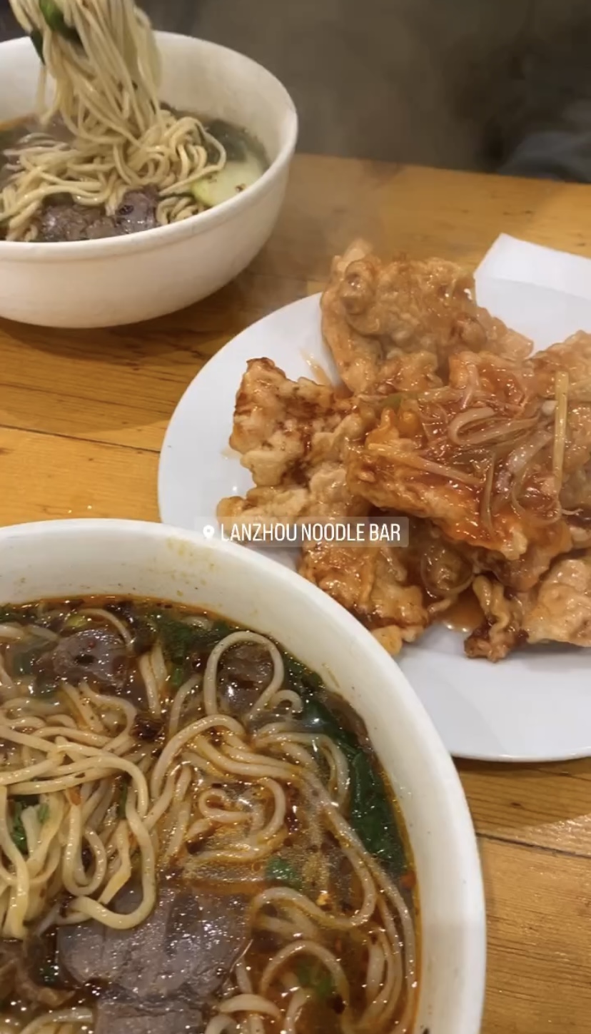 점심은 Lanzhou Noodle Bar에서 먹었습니다.