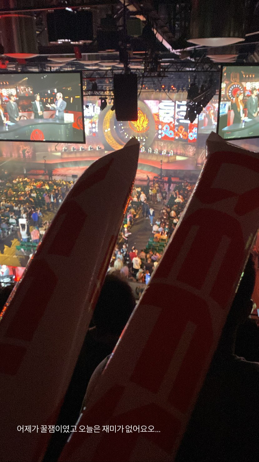 저번주 경기가 다 끝나서야 어떤 팀들이 만나는지 알게 됐기 때문에 좌석은 다 팔렸음에도 불구하고 예매해 놓고 안 오는 사람이 많더라고요. 저도 오늘은 기대 하나도 안 하고 왔는데 예전에 G2 잘할 때 남편이 응원하고 그랬어서 왔어요.
